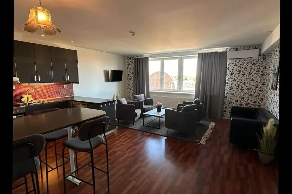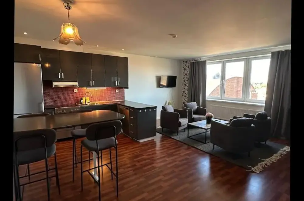 Nycklarna var framgångsrika och boendet hittades lätt. Bra instruktioner för parkering. Lägenhet rymlig och i enlighet med bilder. Sängar och sängkläder är mycket behagliga. Köket verkade mångsidigt, även om vårt besök var så snabbt att vi inte använde köket själva. Frukost med nycklarna var mycket bra på ett närliggande hotell! :)