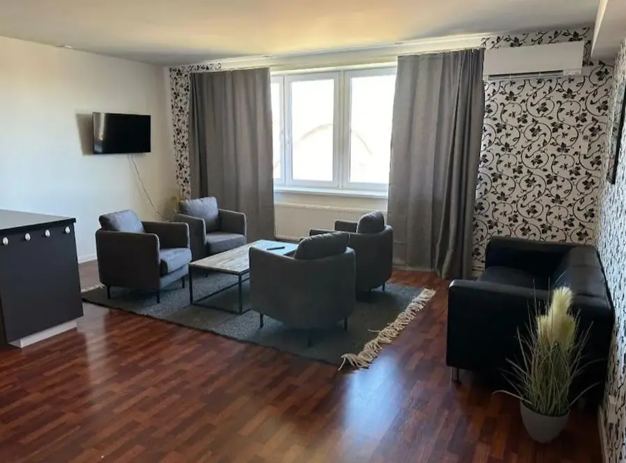 När fönstret var öppet blev restaurangen nedervåningen en lukt av fett. Fönstret stängda lukten kom inte in. Små rostfria spår, t.ex. På golvet och i sovrumsfönstret, men det övergripande utseendet är riktigt rent. Det tog ganska lång tid att komma till varmt vatten, men vi var glada när det började komma :)